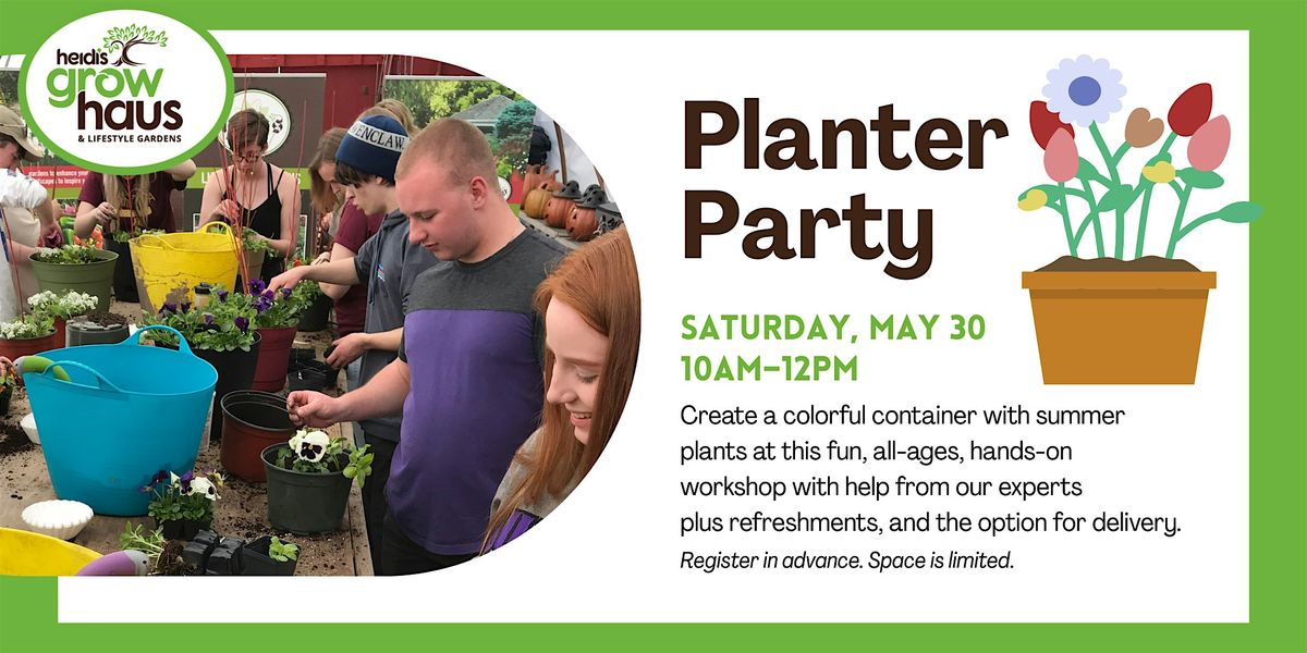 Join us on Saturday, May 31 for our Annual Planter Party—a fun, hands-on event for everyone! Whether you're planning a special gift or just want to add some vibrant color to your outdoor space, this workshop is for all ages and gardening experience levels.