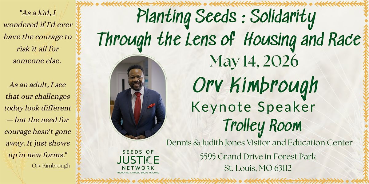 Orvin Kimbrough, whose life journey spans extreme hardship to transformative success, brings deep insight into the St. Louis community. He will explore “The Call” — what people of faith are called to in light of the principle of solidarity, especially around race and housing — and will also join the panel discussion on local challenges and opportunities.