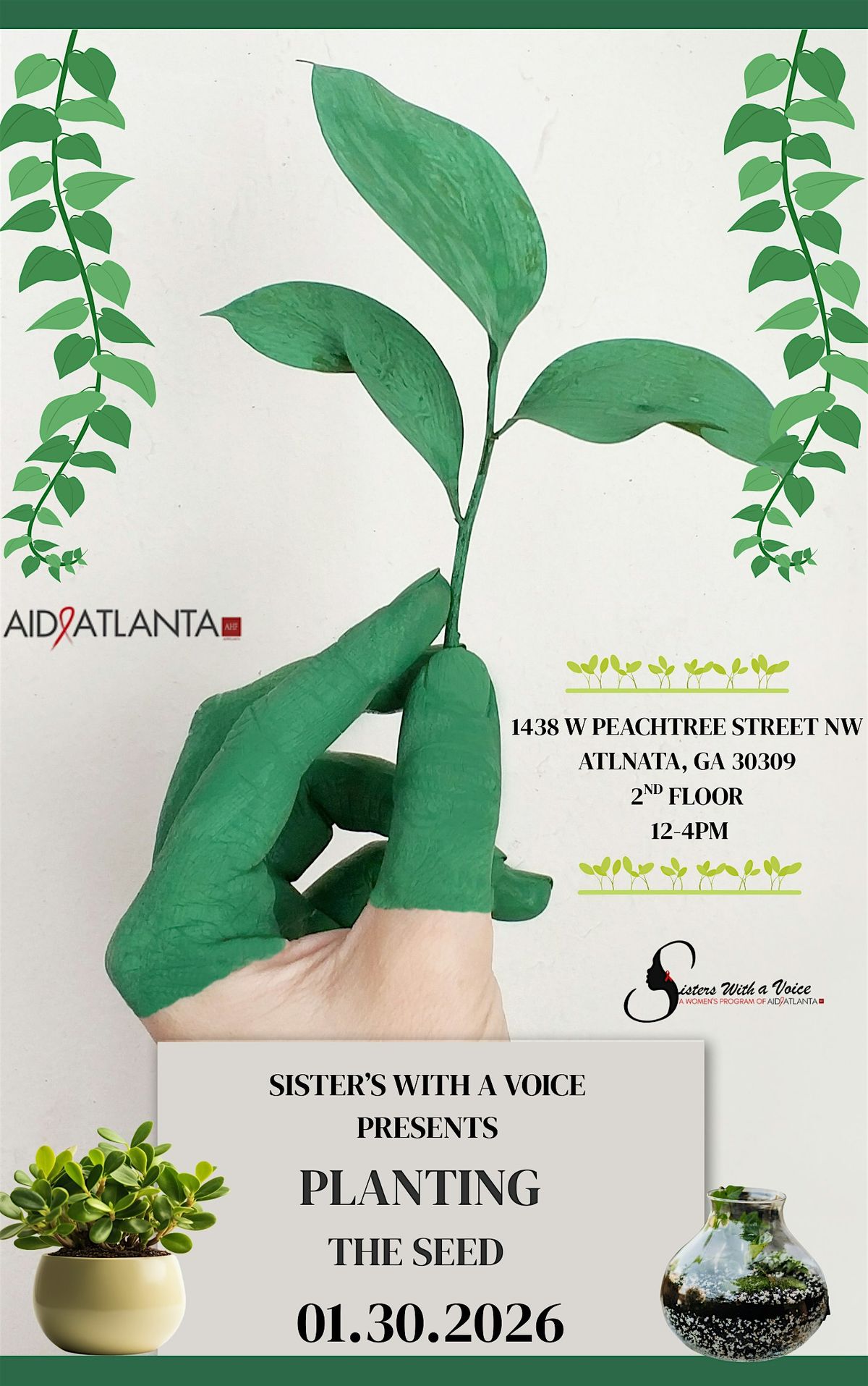 Welcome to Planting The Seed 2026 Social! Join us at 1438 W Peachtree St NW on January 30, 2026 at 12:00 PM (Eastern Time) 2nd floor for a day filled with fun and greenery. Let's get our hands dirty and plant some seeds together. Whether you're a seasoned gardener or a newbie, this event is perfect for all nature lovers. Don't miss out on the chance to connect with like-minded individuals and grow your passion for plants. See you there!
