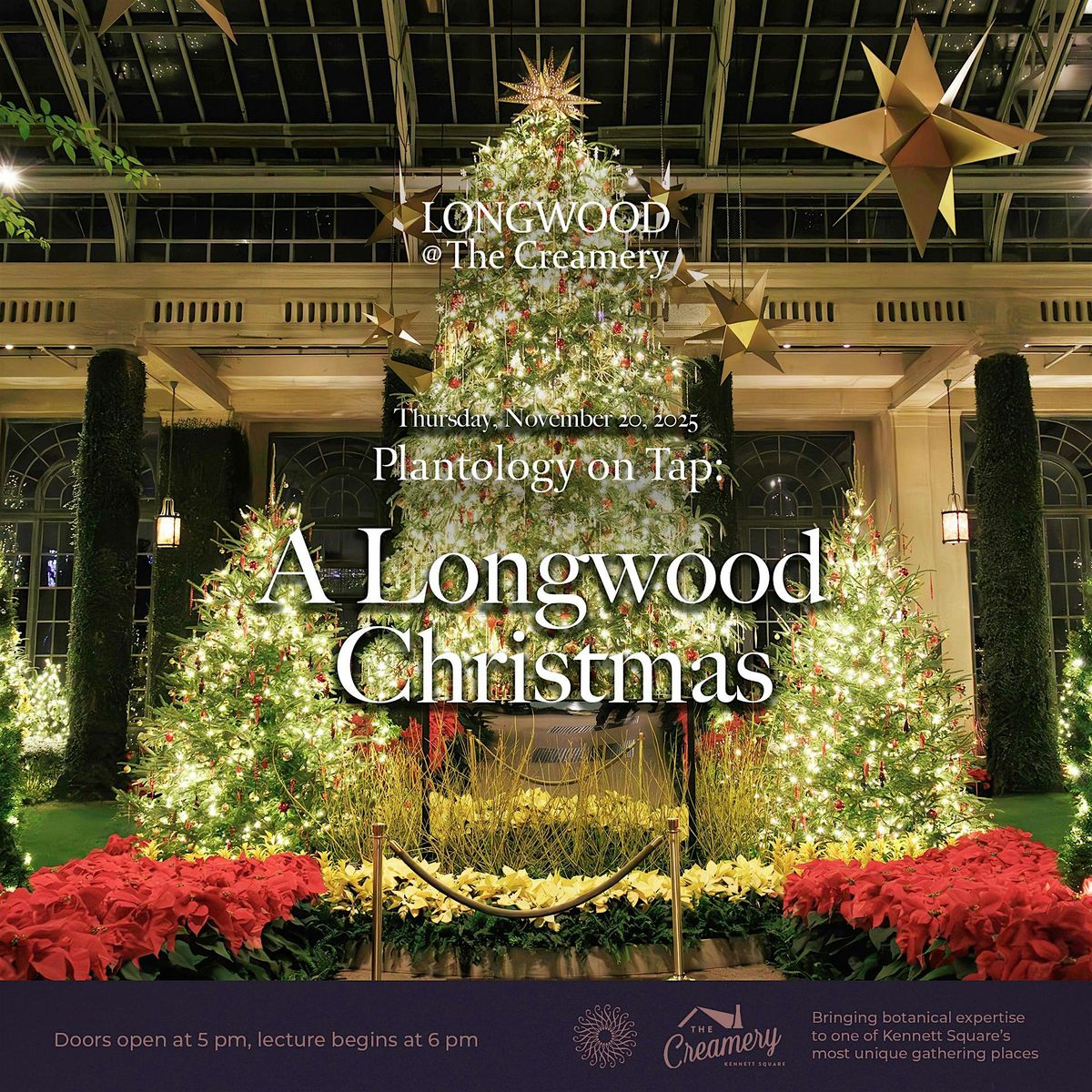 Each year, Longwood Gardens is completely transformed for A Longwood Christmas … and this year will be no exception as we showcase spectacular garden beauty, how-did-they-do-that displays, hundreds of thousands of twinkling lights, and more. Join Longwood’s East Conservatory Manager Karl Gercens as he gives a behind-the-scenes look at the magic of A Longwood Christmas and explores the year-long process that goes into making this one-of-a-kind display possible, from initial planning to installation. Enjoy a delicious small bite and signature cocktail to round out the fun!