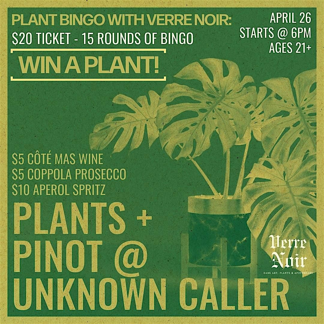 Join us April 26th at 6PM for a night of Plant Bingo with our friends at Verre Noir! 🌿