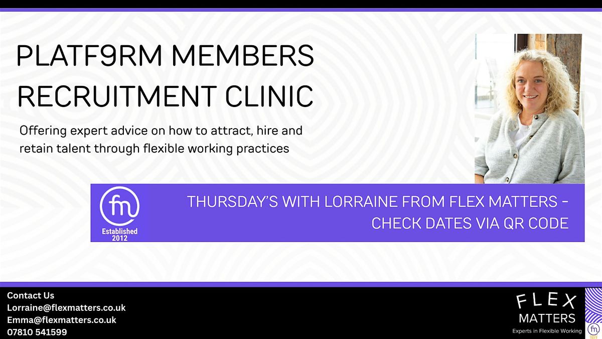 With fierce competition for talent in every sector, our database of experienced, flexible working professionals means we can help you find the best people for your team. Whether you're recruiting, considering implementing flexible working or need HR support. Our team are based at Platf9rm in Brighton on alternate Thursday's, arrange a convenient date and time with Lorraine.