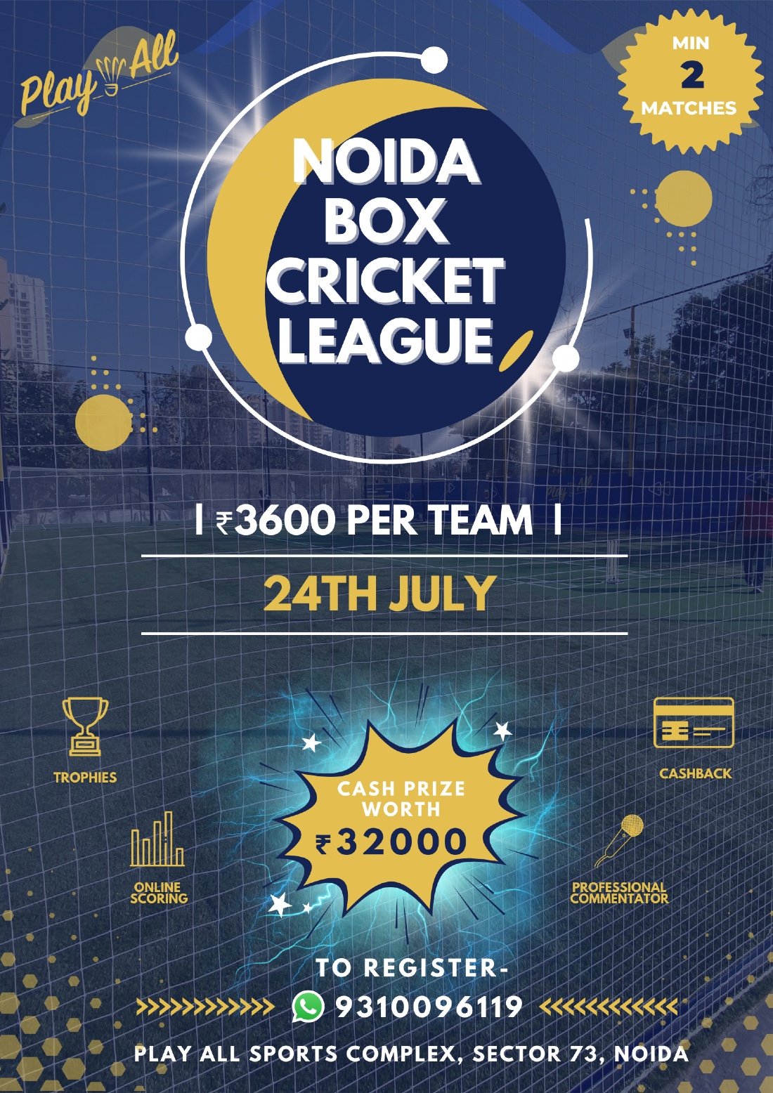So come experience cricket sentiments and excitement and take it a notch higher as Play All is coming up with its first-ever Box Cricket tournament in NOIDA!