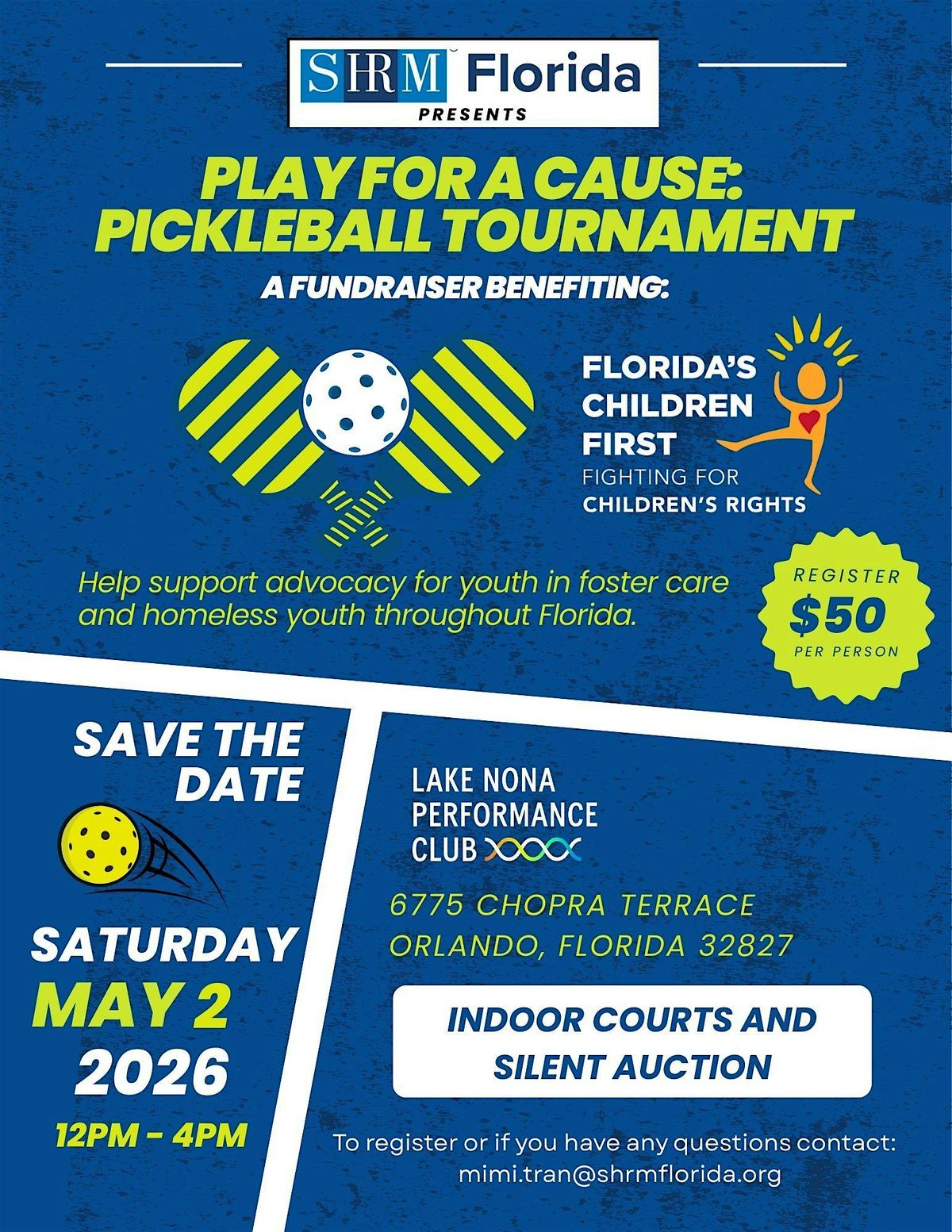 Grab your paddle and join us for a high-energy and fun afternoon of pickleball—where every serve, rally, and point helps improve the lives of Florida’s most vulnerable children.