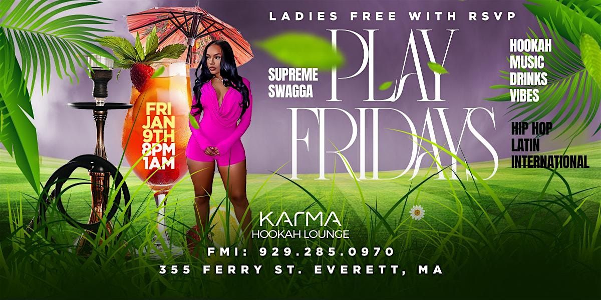 Welcome to Play Fridays at Karma Hookah Lounge Boston! Get ready to kick off your weekend with a night full of hookah,drinks, music and fun vibes each and every Friday