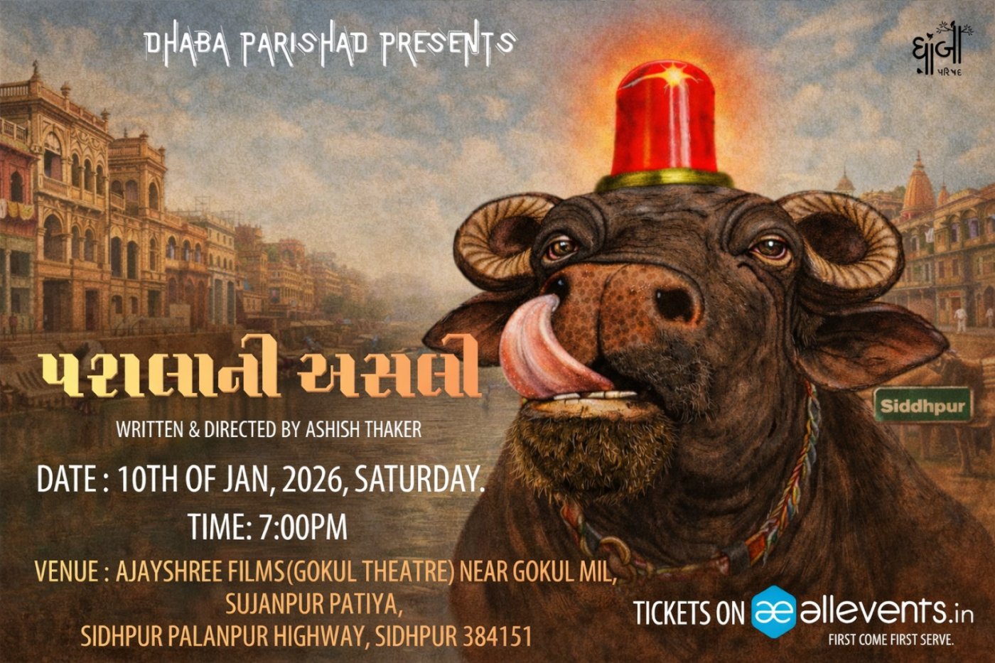 Experience the heartwarming and comedic theatrical production, "Play: Pashala Ni Asali," presented Dhaba Parishad theatre group, featuring the talented cast under the direction of the renowned Ashish Thaker.