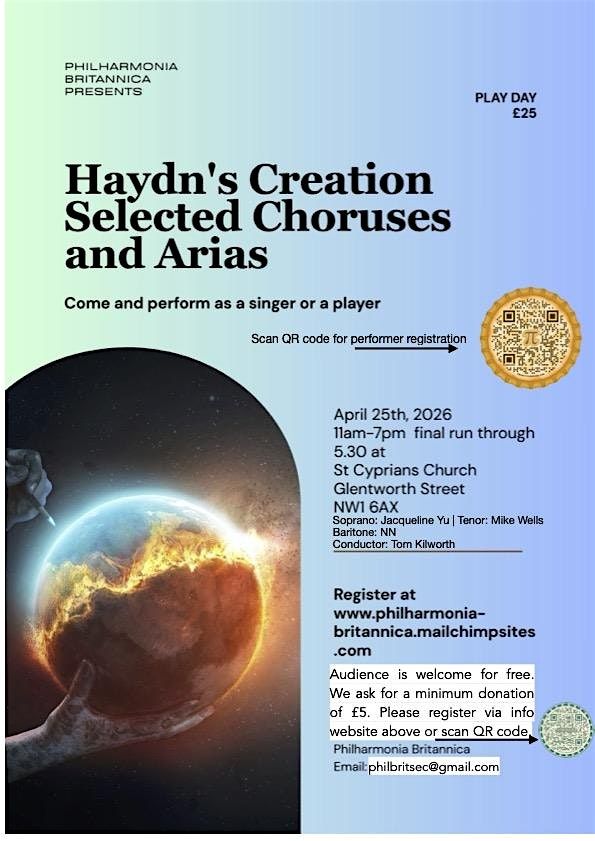 25th April 2026 choruses from “The Creation” by Joseph Haydn