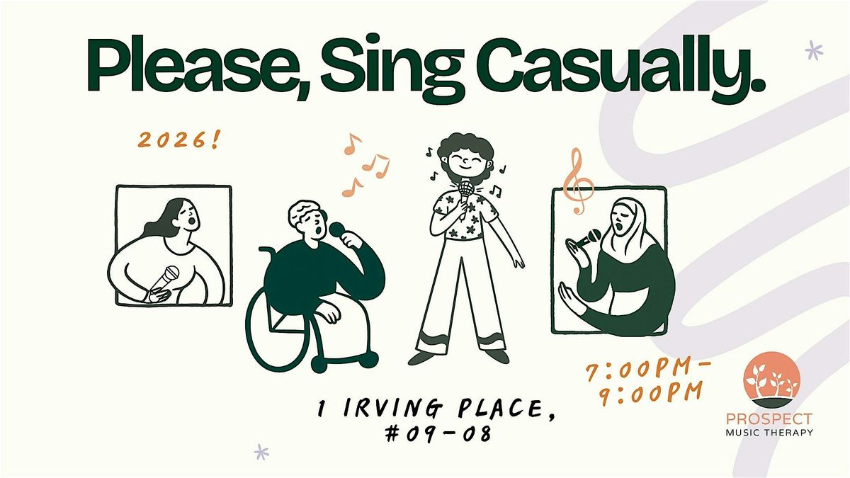 Are you ready to just sing? Please Sing Casually is a 90-minute vocal gathering for anyone who wants to explore their voice in good company — with zero pressure to perform, perfect, or be impressive.
