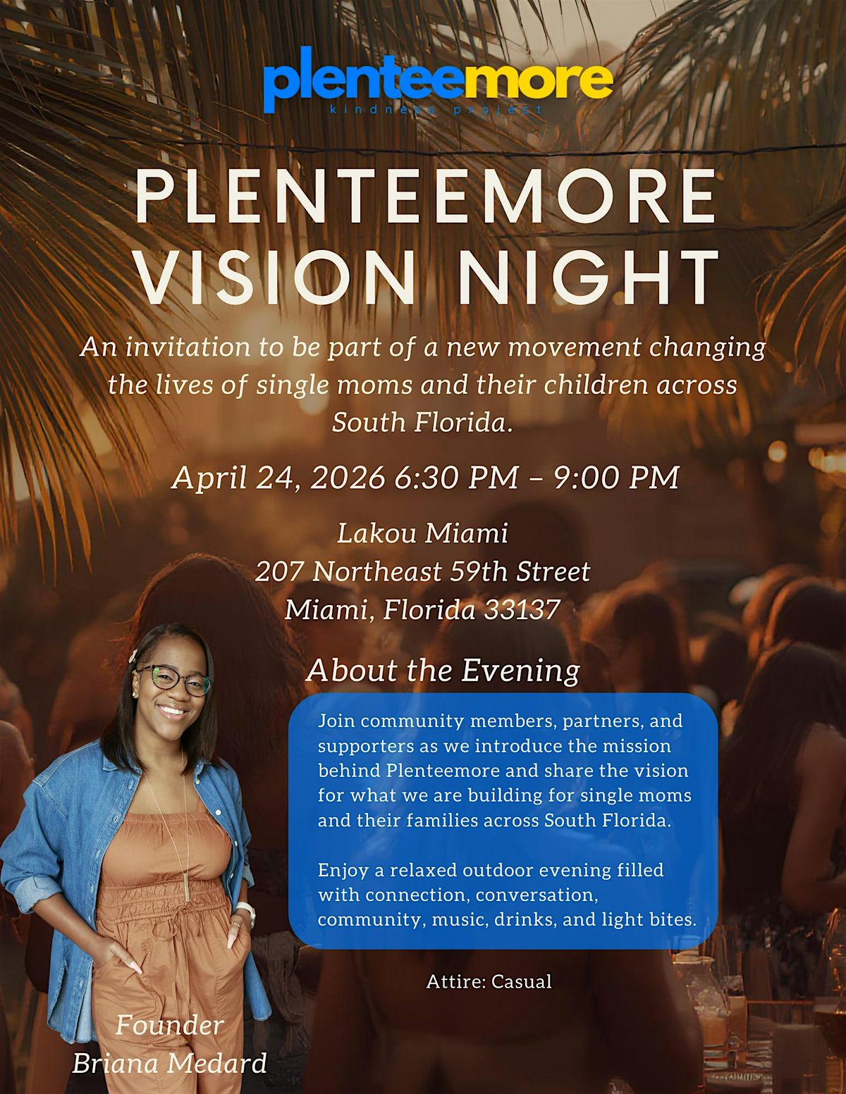 Plenteemore Vision Night is an opportunity to gather with community members, partners, and supporters as we introduce the mission behind Plenteemore and share the vision for what we are building for single moms and their families across South Florida.