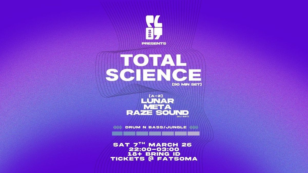 With a legacy of global tours, festival sets (Glastonbury, Sun & Bass, Let It Roll), and consistent radio support, Total Science remain a vital force in drum and bass, respected for their genre-spanning sound, forward-thinking collaborations, and commitment to evolving and maintaining a credible scene.