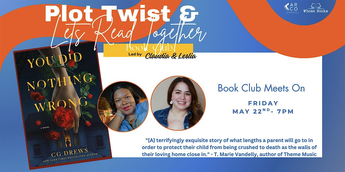 Join Plot Twist & Letβs Read Together Book Club, led by Claudia & Leslie, for a discussion of You Did Nothing Wrong by C.G. Drews β a gripping and emotional novel that explores love, fear, and the lengths we go to protect the people we care about.