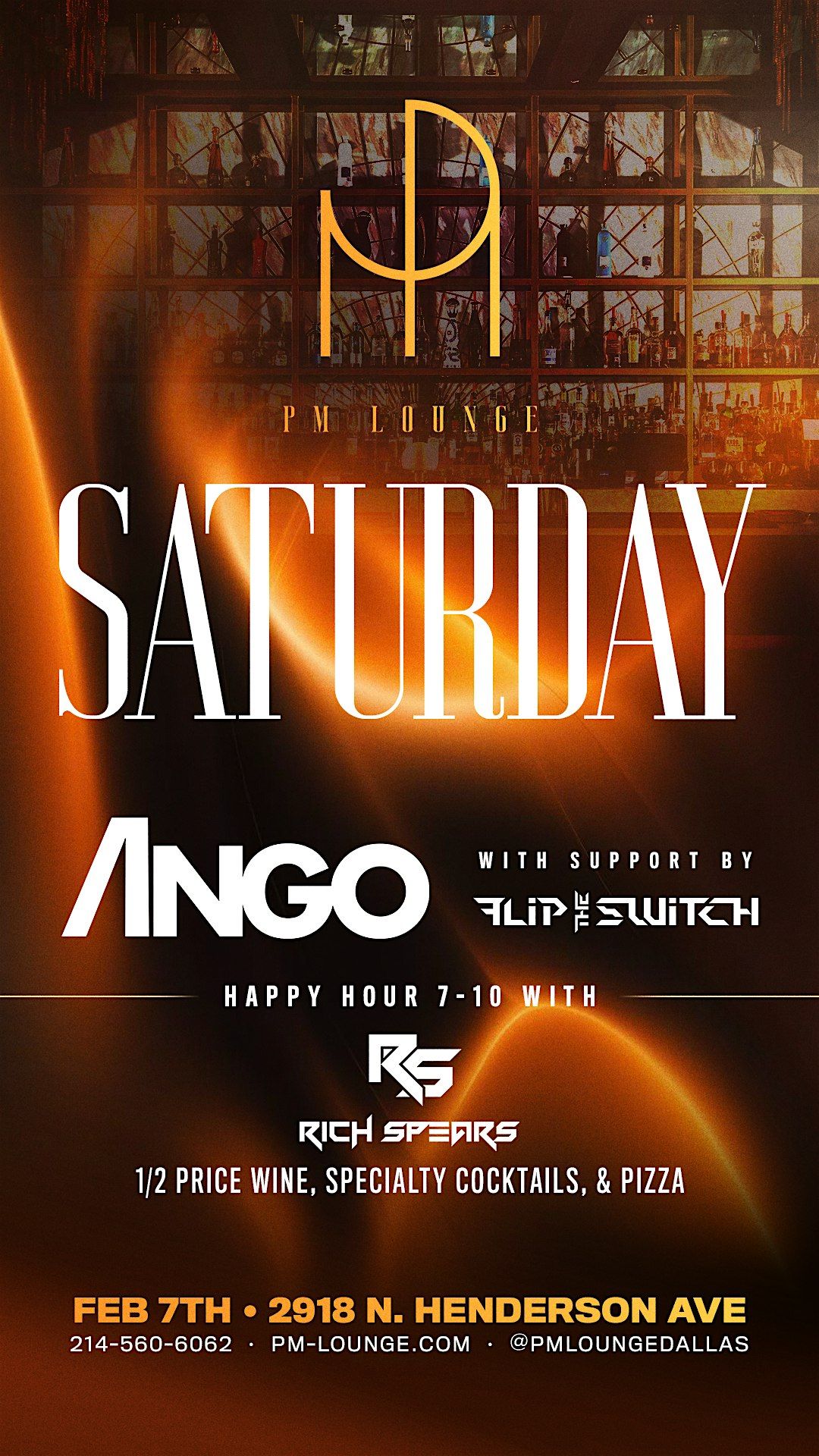 Event Details: 📅 Saturday, February 7, 2026 ⏰ 7:00 PM - 2:00 AM 📍 PM Lounge, Henderson Avenue, Dallas, TX 75206 🔞 21+ with valid ID required