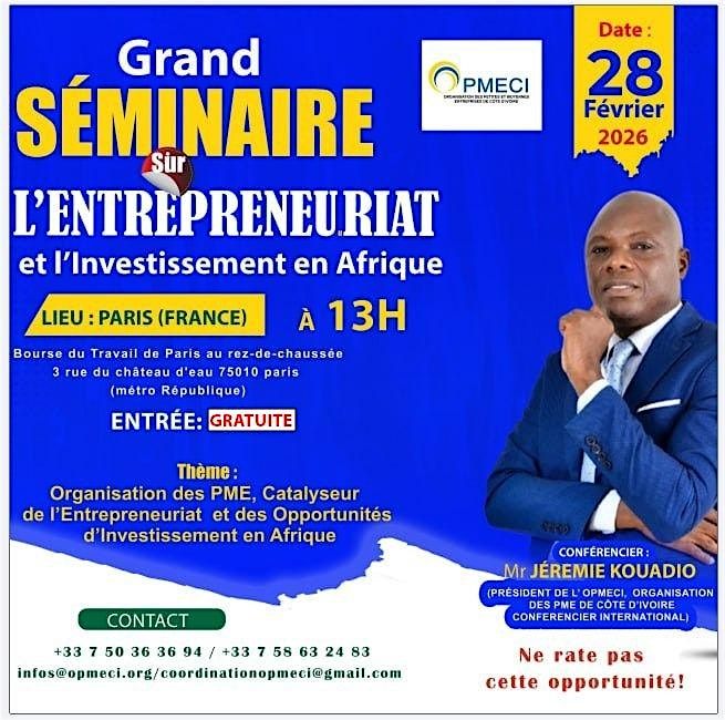 Viens découvrir des opportunités inédites , des secteurs porteurs et des mécanismes pour sécuriser tes investissements . C’est un super rendez-vous en présentiel pour avoir une vision claire de l'entrepreunariat et de l'investissement en Afrique.