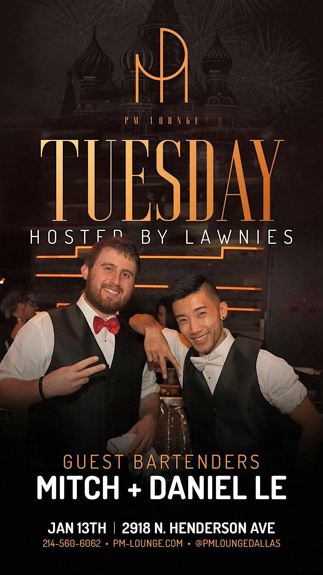 Get ready for an unforgettable night of elevated vibes and signature cocktails at PM Lounge! This Tuesday, we're handing over the bar to guest bartenders Mitch & Daniel Le, while Lawnies hosts an evening of industry energy and Henderson Ave's best nightlife.