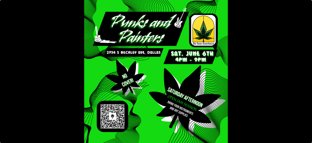 🍃PUNKS & PAINTERS, Saturday Afternoon, Open Jam Session is at The Texas Greenhouse on, June 6th!🍃