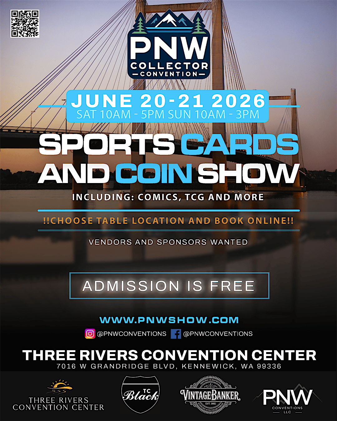 Join us Father’s Day weekend — June 20–21, 2026 at the Three Rivers Convention Center in Kennewick, WA for an incredible weekend of sports cards, coins, TCG, comics, collectibles, and more!
