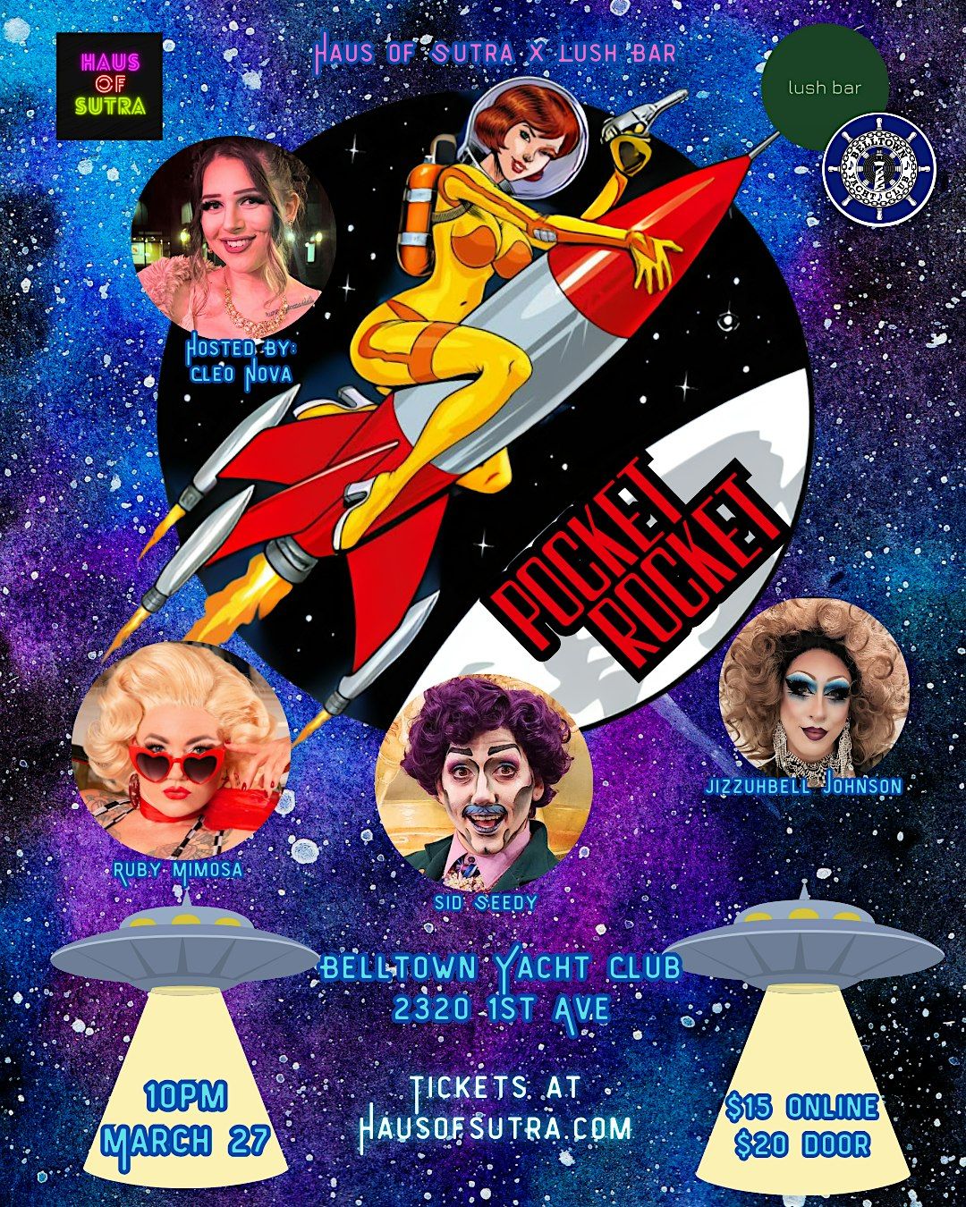 Lush Bar pop-ups take over Belltown’s best-kept secret: The Belltown Yacht Club Speakeasy & Cabaret. Every Friday Haus of Sutra artist collective, brings you queer-led entertainment that celebrates self-expression, artistry, and connection.