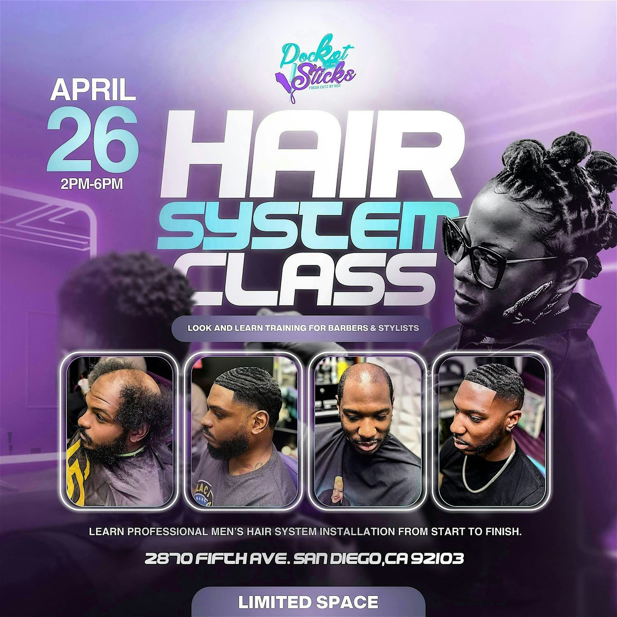 Ready to up your hair game? Join our in-person Pocketsticks Hair System Class look and learn with the latest techniques. Whether you're new or experienced, this is your chance to learn all about styling, fitting, and caring for hair systems in a fun, relaxed setting. Don’t miss out on connecting with fellow hair enthusiasts and boosting your skills!