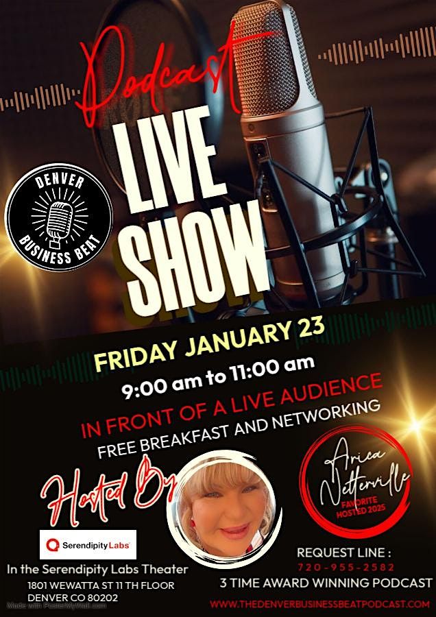 Then, take your seat in a live studio audience for a special taping of The Denver Business Beat Podcast hosted by the dynamic Arica Netterville, owner and voice behind one of Denver’s most influential business platforms.
