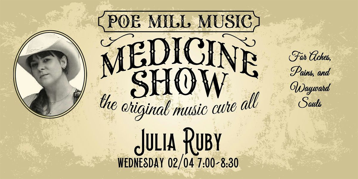 The Poe Mill Music Medicine Show is on Wednesday nights. We have an intimate listening room for regional singers and songwriters to share their art. Music is medicine for the soul.