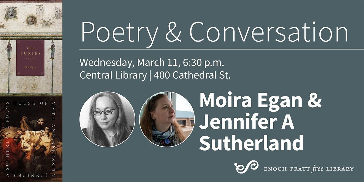 Join us for an evening with poets Moira Egan and Jennifer A Sutherland, reading from and conversing about their new books.