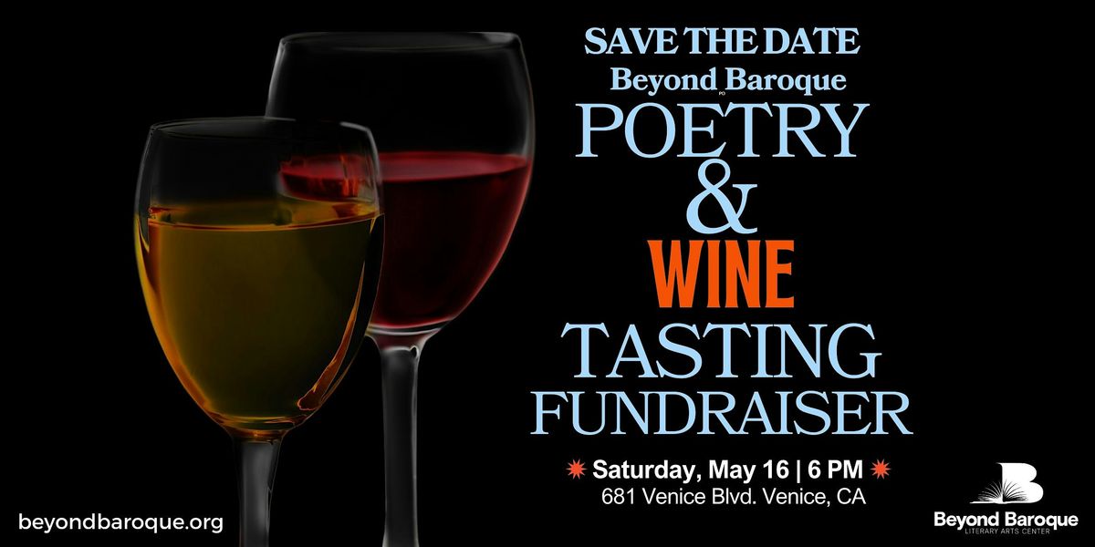 Join us in the Poets’ Garden at Beyond Baroque for our spring fundraiser! Enjoy an evening of wine tastings paired with poetry, with all proceeds supporting Beyond Baroque’s programming and its mission to expand opportunities for a diverse literary community. As Los Angeles’ oldest literary organization, Beyond Baroque needs your support to continue providing a home for learning and creative expression through workshops, weekly readings, and performances at our historic space in Venice. Stay tuned for more info!