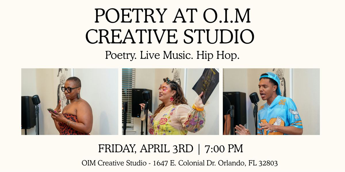 Join us in person at O.I.M. Creative Studio for a night all about words, rhythm, and real creative energy.