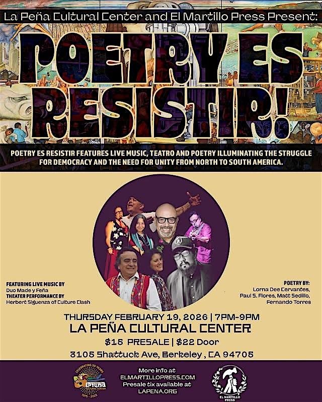 Join us for live music, teatro and poetry illuminating the struggle and beauty from North to South America. Featuring performances by: Duo Made y Feña, Herbert Siguenza of Culture Clash, Lorna Dee Cervantes, Paul S. Flores, Matt Sedillo, Fernando Torres