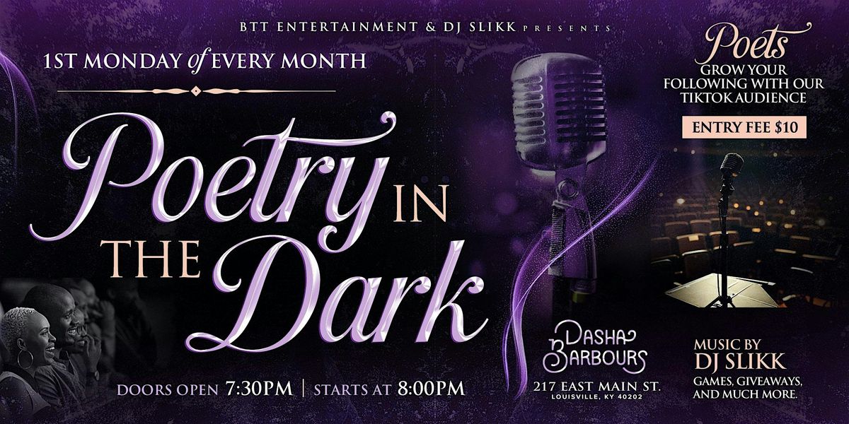 Poetry in the Dark is a unique event designed to create an immersive experience where adults can fully engage their senses and enjoy an unforgettable night of poetry, spoken word, and musical artistry. DJ Slikk "The Mixtape Iron Man" and Lish have curated a vibe! Our interactive TikTok audience is an event in itself! Whether you're an experienced poet or feeling a bit nervous about stepping onto the stage, this event offers the perfect atmosphere to share your voice. Mondays just got a little less stressful and a lot more chill!