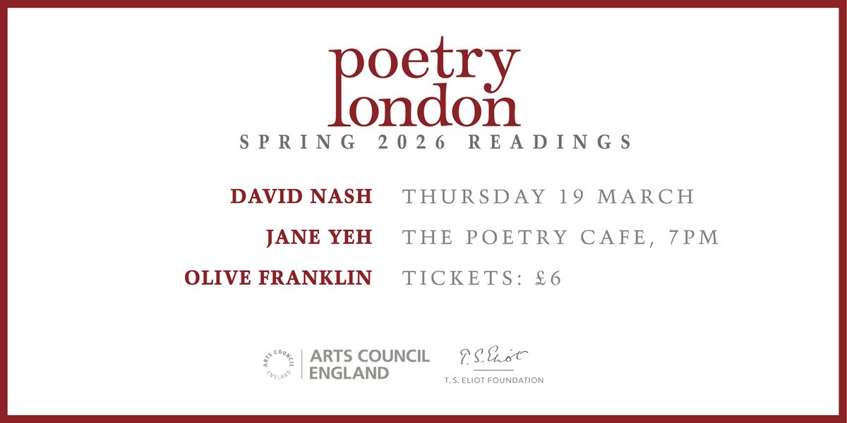 We're happy to announce our Spring issue launch at the Poetry Café. The event will feature live readings from David Nash, Jane Yeh, and Olive Franklin - the winner of the 2025 Pamphlet Prize.