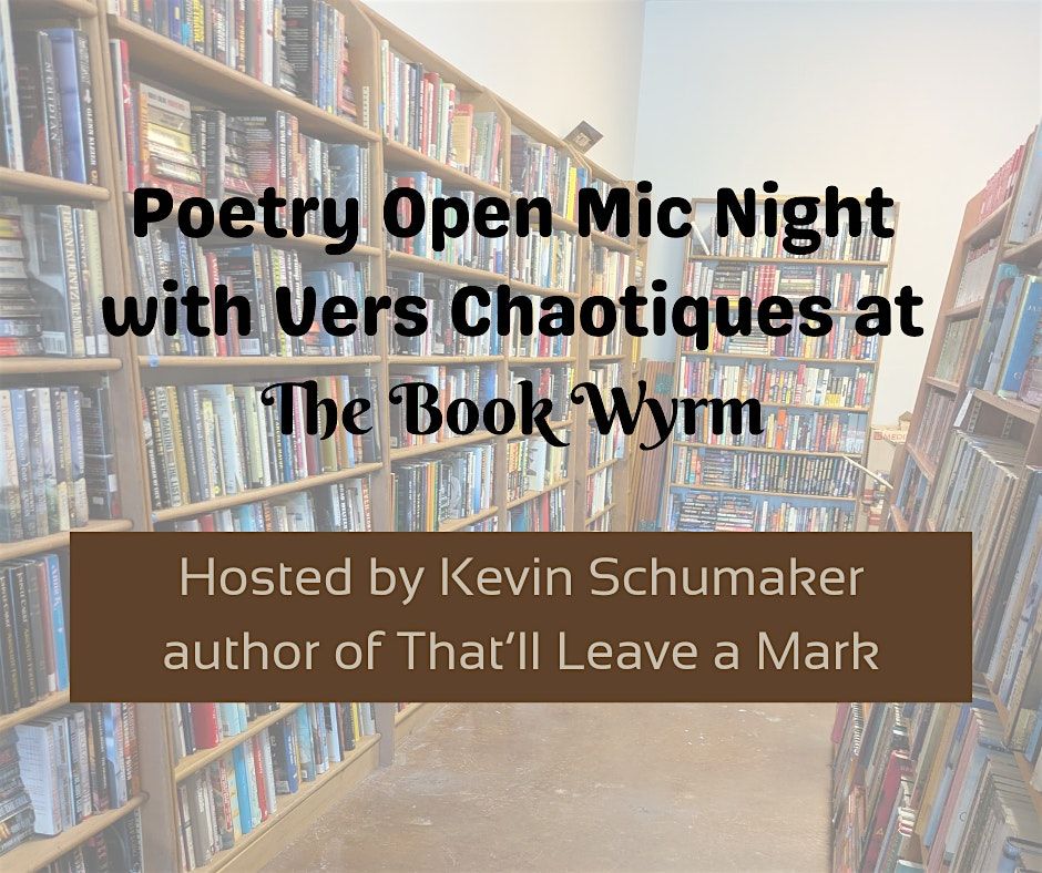 Join Vers Chaotiques and The Book Wyrm for Poetry Open Mic Night hosted by Kevin Schumaker author of "That'll Leave A Mark"
