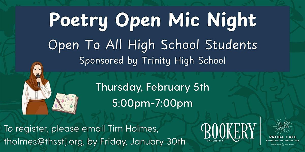 Calling all High School Students! Share your poetry with us, here at Bookery Manchester, on Thursday, February 5th, from 5-7pm.