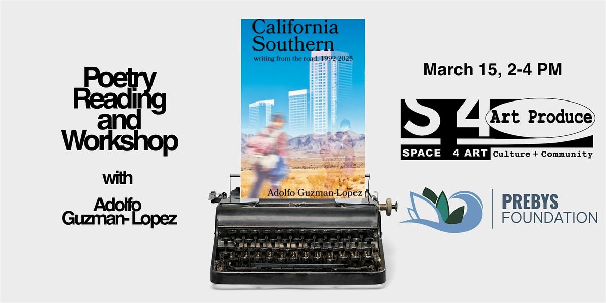 Poet and journalist Adolfo Guzman-Lopez, co-founder of the Taco Shop Poets and reporter for LAist, will lead a workshop and reading centered on his new book, California Southern: writing from the road, 1992–2025, which reflects on his life as a Mexican-American and his mother’s work cleaning homes in San Diego. The workshop invites participants whose family members did domestic work to write about their experiences and share their pieces in a community reading.