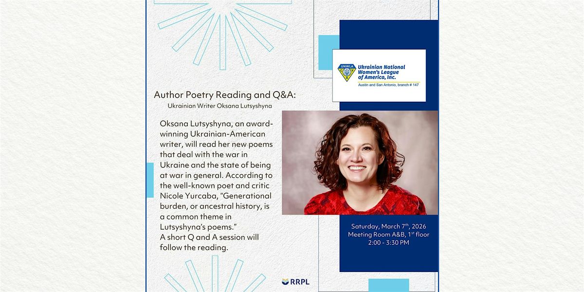 Join us for an in-person poetry reading & Q&A with award-winning Ukrainian-American writer Oksana Lutsyshyna