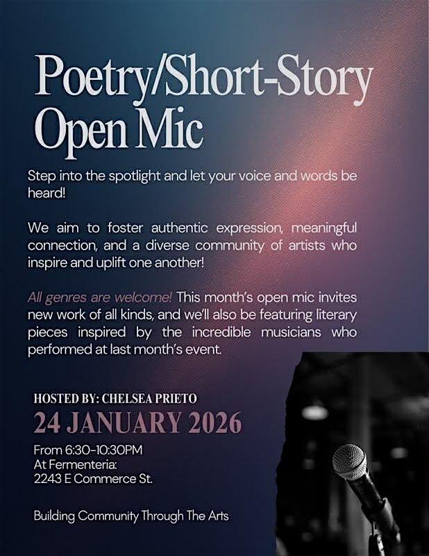 This month's open mic night invites new work of all kinds, and we'll also be featuring literary pieces inspired by the incredible musicians who performed at last months event