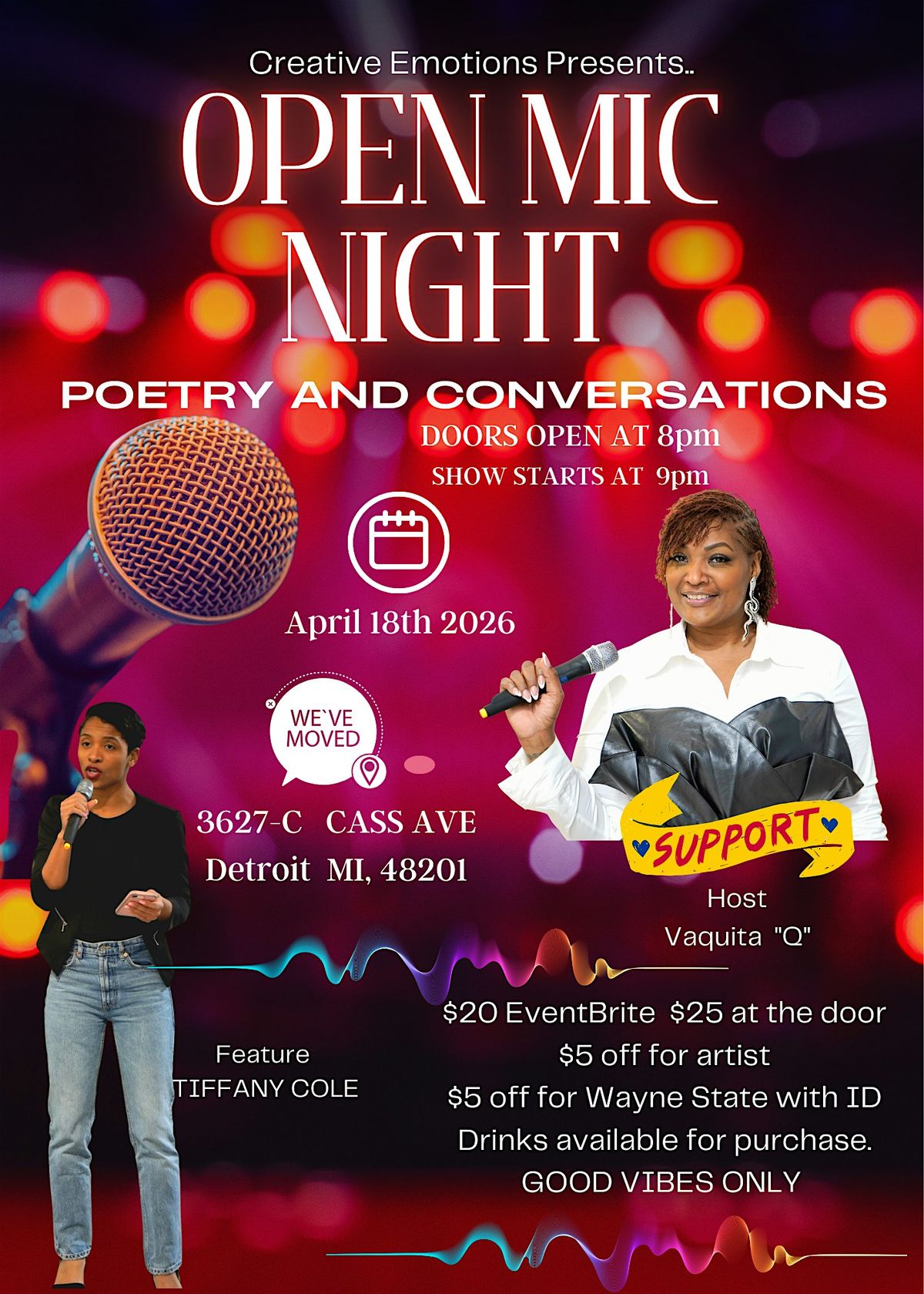 Come enjoy a night of grown conversation and amazing artists in the City! This is open mic for Poets, comedians, storytellers, singers etc.