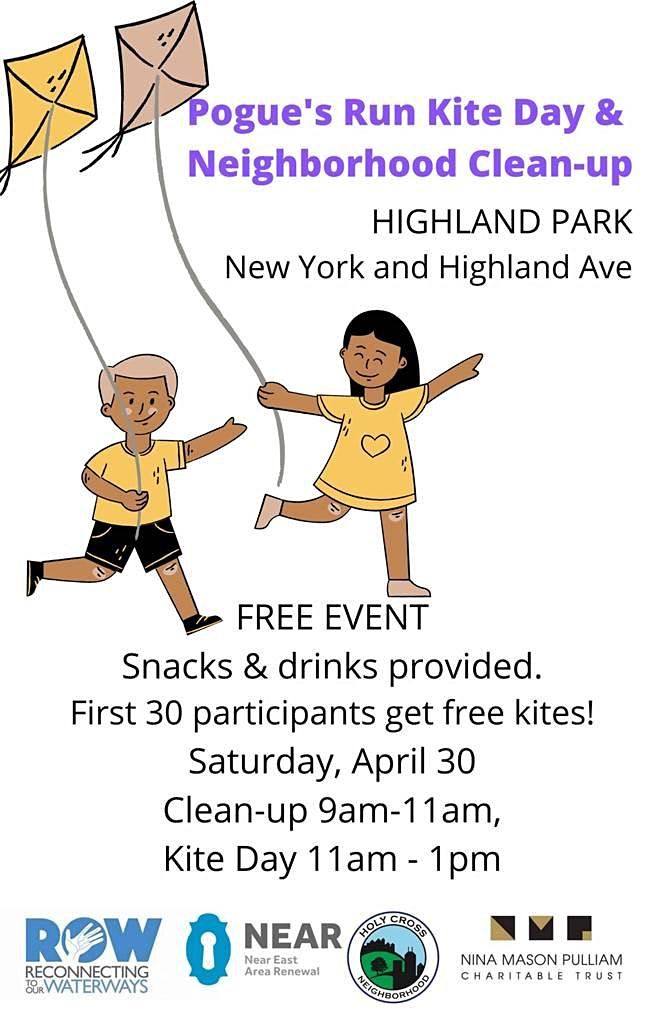Join Holy Cross Neighborhood Association and Pogue's Run Waterway Committee for a community clean-up and kite-flying day at Highland Park on Saturday, April 8.