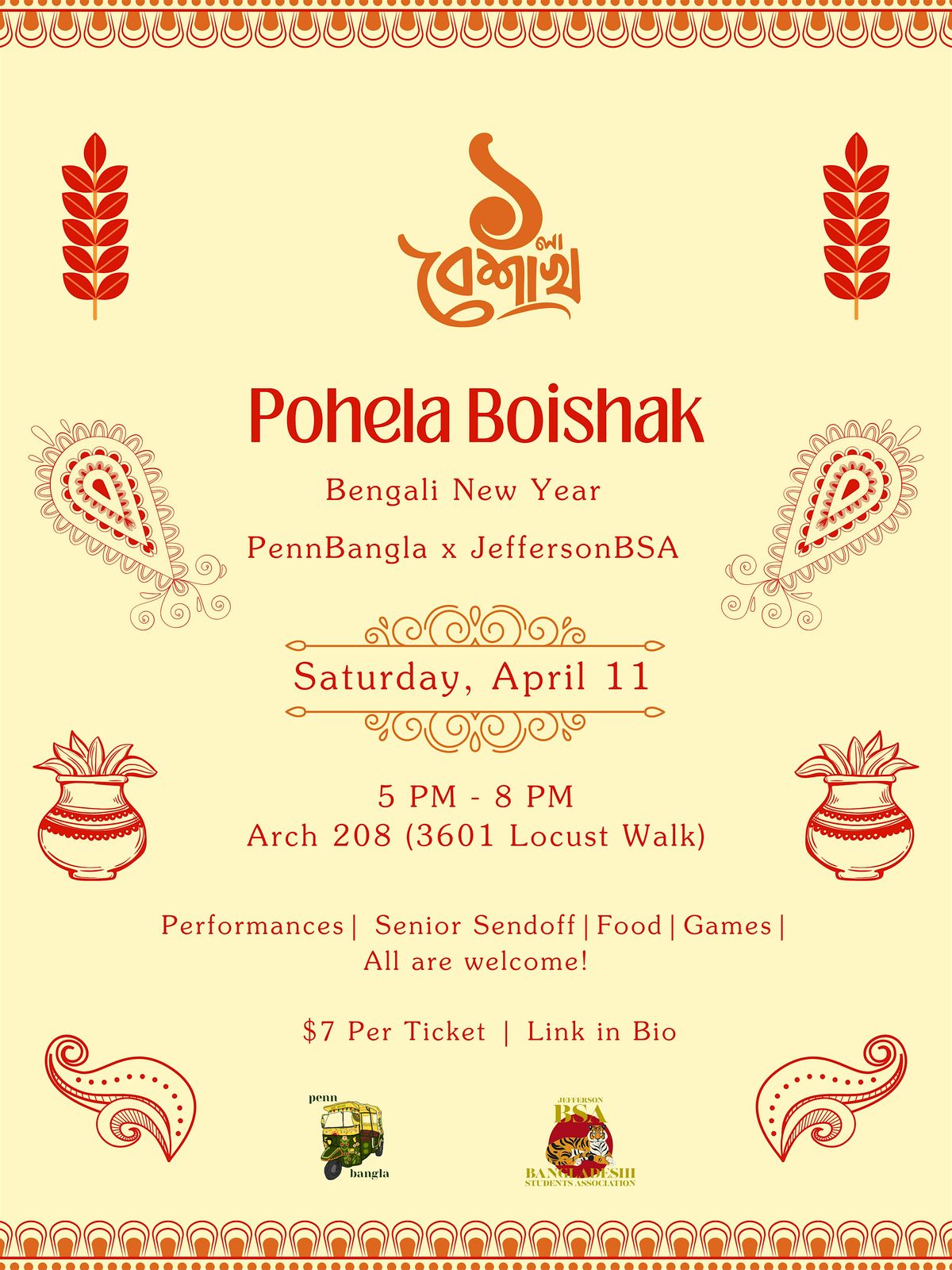 Join us in person to celebrate Poihela Boshak, the vibrant Bengali New Year! It's a day full of colorful traditions, lively music, delicious food, and lots of joy. Whether you're with family or friends, come experience the rich culture and festive spirit that marks this special occasion. Let's welcome the new year with smiles, dance, and togetherness!