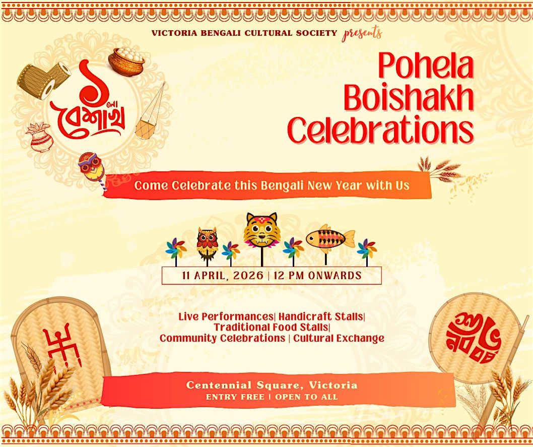 The Victoria Bengali Cultural Society (VBCS) invites you to a one-of-a-kind celebration of Pohela Boishakh (the Bengali New Year).