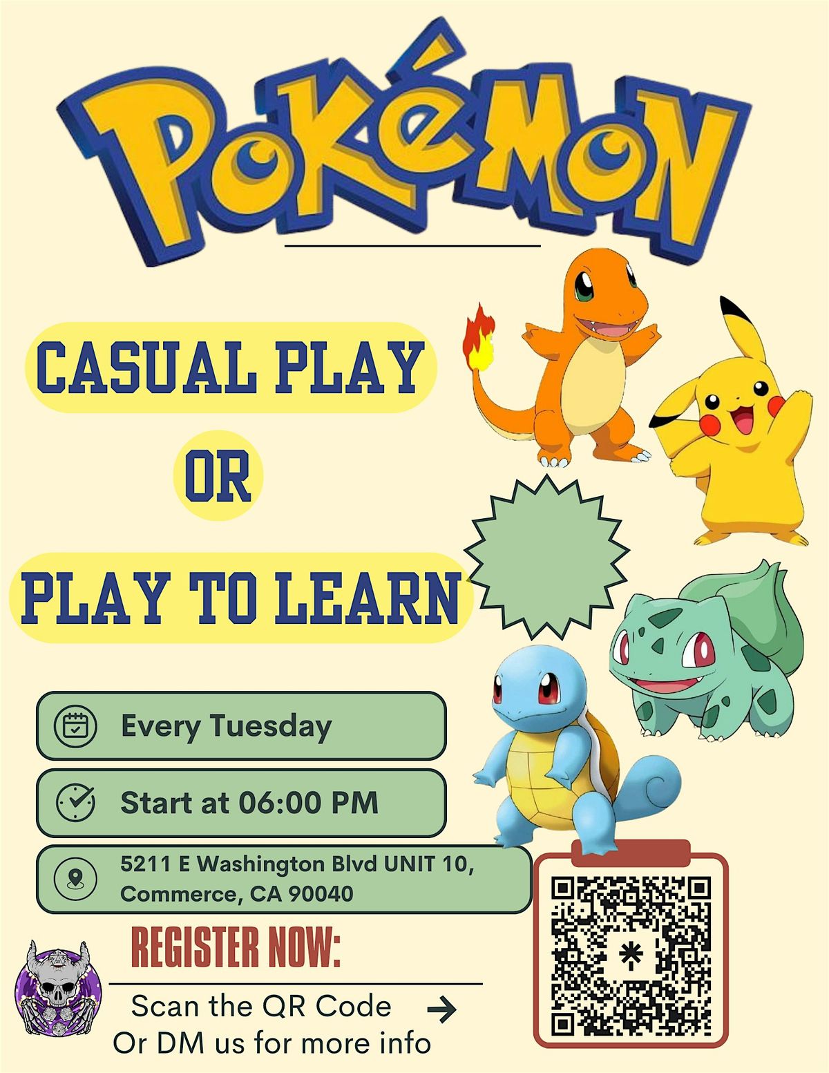 This event is ideal for players searching for a Pokémon near Los Angeles, a Pokémon TCG casual league, or a local Pokémon play-to-learn event in Commerce, California.