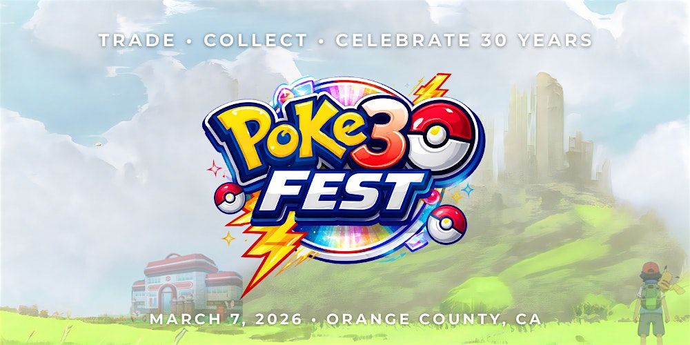 Poke30 Fest is a community day for collectors, fans, and families to celebrate the hobby together, with shopping, trading, interactive experiences, food and live energy all day.