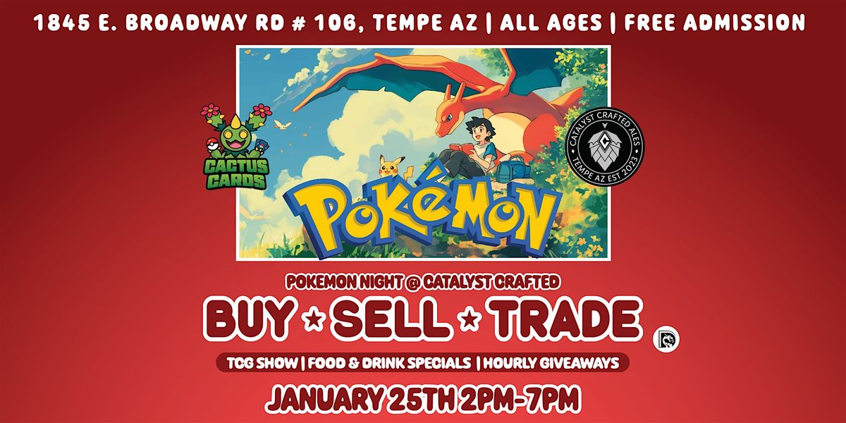 Come out for a fun, laid-back event and connect with the local Pokémon community. Whether you're looking for your grail, packs to rip, slabs, handmade goods, or anything in between, you can count on finding it at Catalyst!