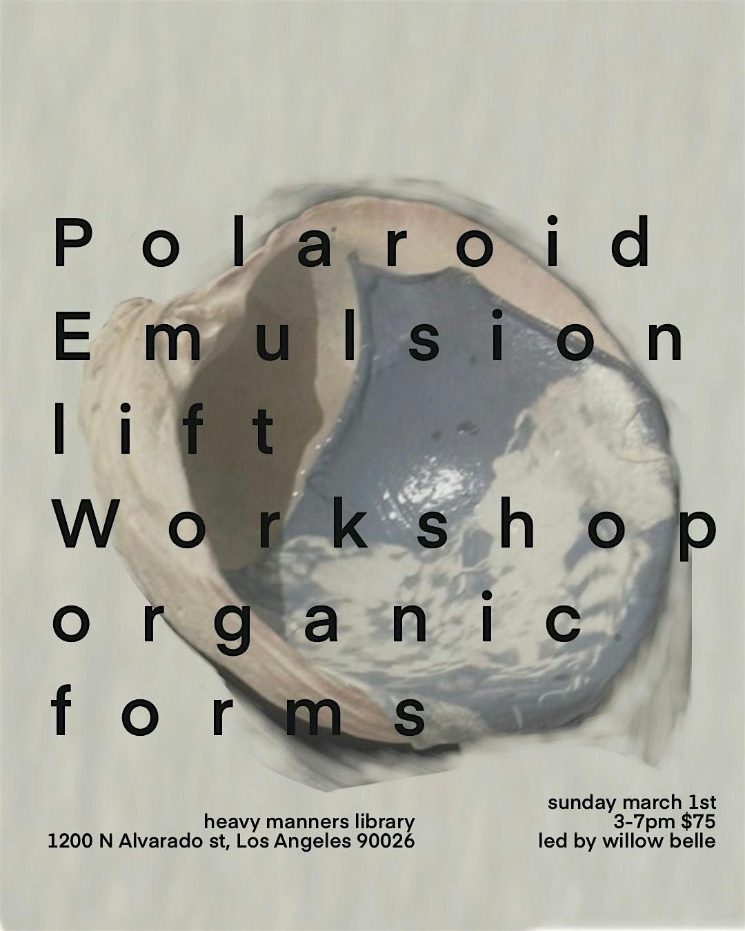 Explore the possibilities of Polaroid through emulsion lifts - a technique that allows you to gently separate the emulsion layer and transfer it to a new surface. In this workshop we will be learning how to lift specifically onto organic forms like rocks, sea shells, and wood. No prior photography experience needed and all materials for the workshop will be provided. Feel free to bring Polaroid pictures or cameras you may have or materials you’d like to transfer on. Despite its fragility, Polaroid emulsion is highly malleable and can work on most surfaces including those of fabric, glass, and even leaves. Slow down, connect, and reimagine the Polaroid image as a delicate, translucent skin.