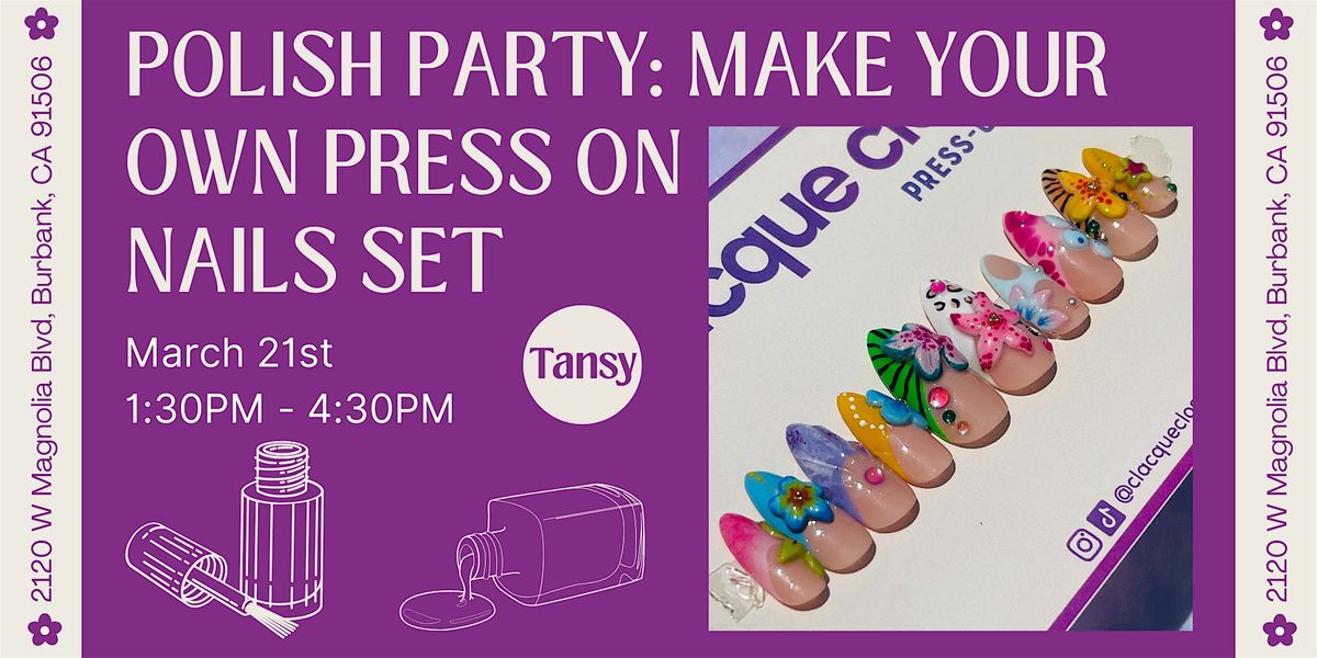 Join us at Tansy for The Polish Party, a hands-on nail art workshop where you'll learn how to create one of the most classic and versatile nail designs: the French tip. This session is beginner-friendly and designed for anyone who wants to slow down, get creative, and leave with a custom press-on nail set they’ve designed themselves. Inspired by Tansy’s warm, botanical atmosphere, we’ll explore nature-forward palettes and modern twists on the French tip.