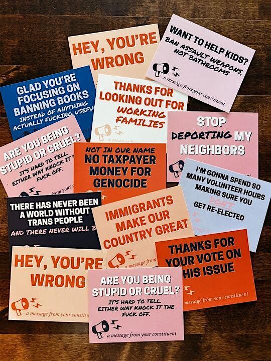 Join us for a casual, drop-in postcard writing event where you can connect with your elected officials. Stay for a few minutes or settle in for a while. Weβll provide all the supplies (plus complimentary hot tea!), and itβs kid-friendly with coloring activities for little ones. Pay what you can (suggested $5 donation) or bring your own stamps.