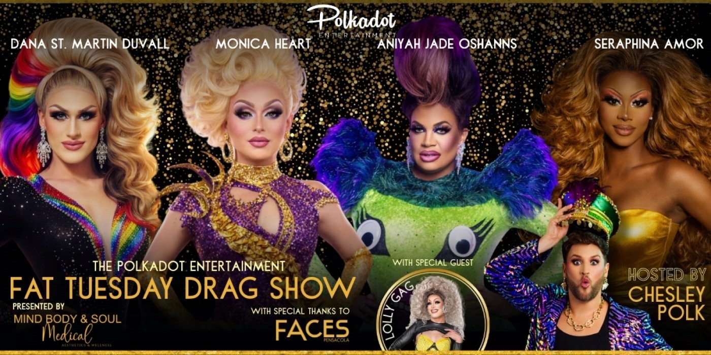 Polkadot Entertainment, the award-winning, queer-owned creative and entertainment company based on the Gulf Coast, proudly announces the return of its signature Fat Tuesday Drag Show, taking place Tuesday, February 17, 2026, at the iconic Seville Quarter in downtown Pensacola.