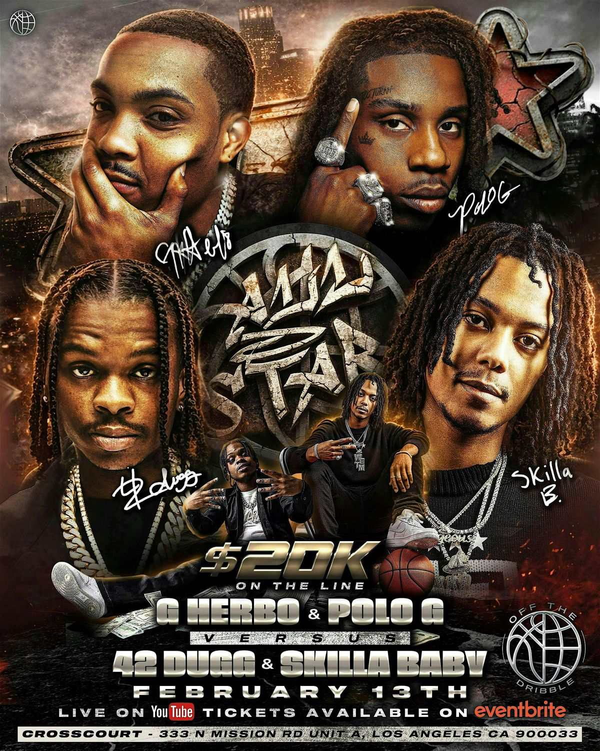 The night also features a celebrity 2v2 main event for $20,000 cash, with Polo G and G Herbo taking on Skilla Baby and 42 Dugg, adding pride, money, and All-Star Weekend energy to an already stacked lineup.
