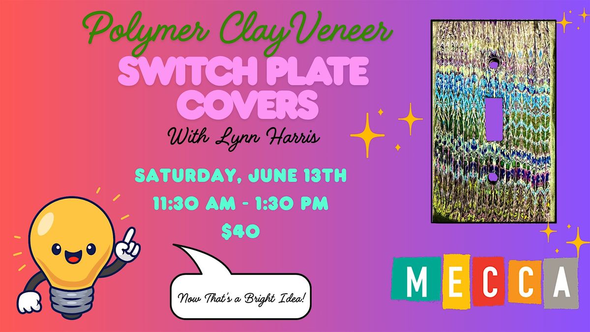 Join us in person for a fun and creative session with Lynn Harris! You'll learn how to make stunning polymer clay veneer slab that can be used to cover a switch plate or make jewelry. These handmade pieces will add a unique touch to your home or wardrobe. This hands-on event is a great way to get crafty, meet new people, and leave with your very own custom switch plate cover. Don’t miss out on a chance to create and enjoy a chill, artistic vibe!