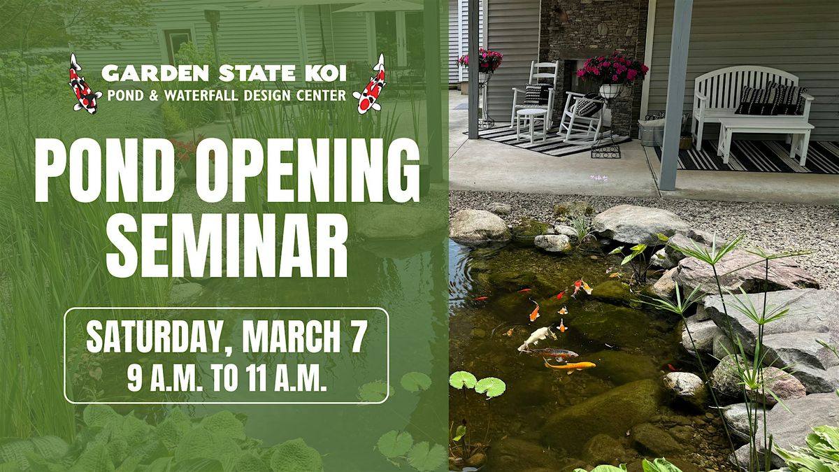 Join Garden State Koi's Maintenance Manager Jason Hranitz on Saturday, March 7 from 9 a.m. to 11 a.m. at our store in Warwick, New York to learn how to get your pond ready for the season. This is a great class for first-time pond owners!