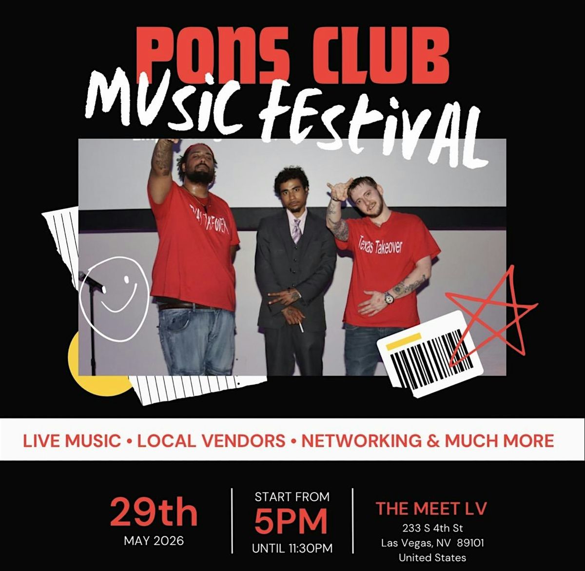 Get ready to vibe all day with awesome tunes and good company at the Pons Club Music Festival!